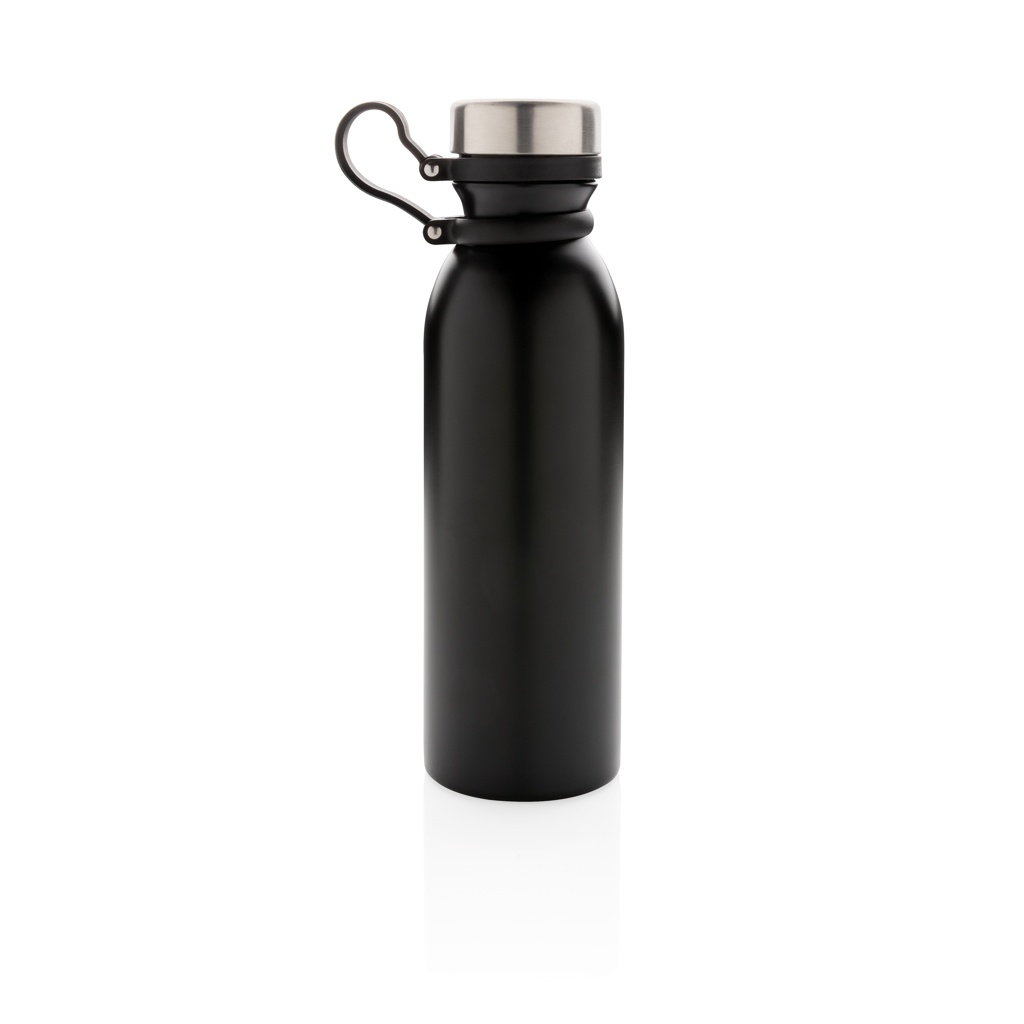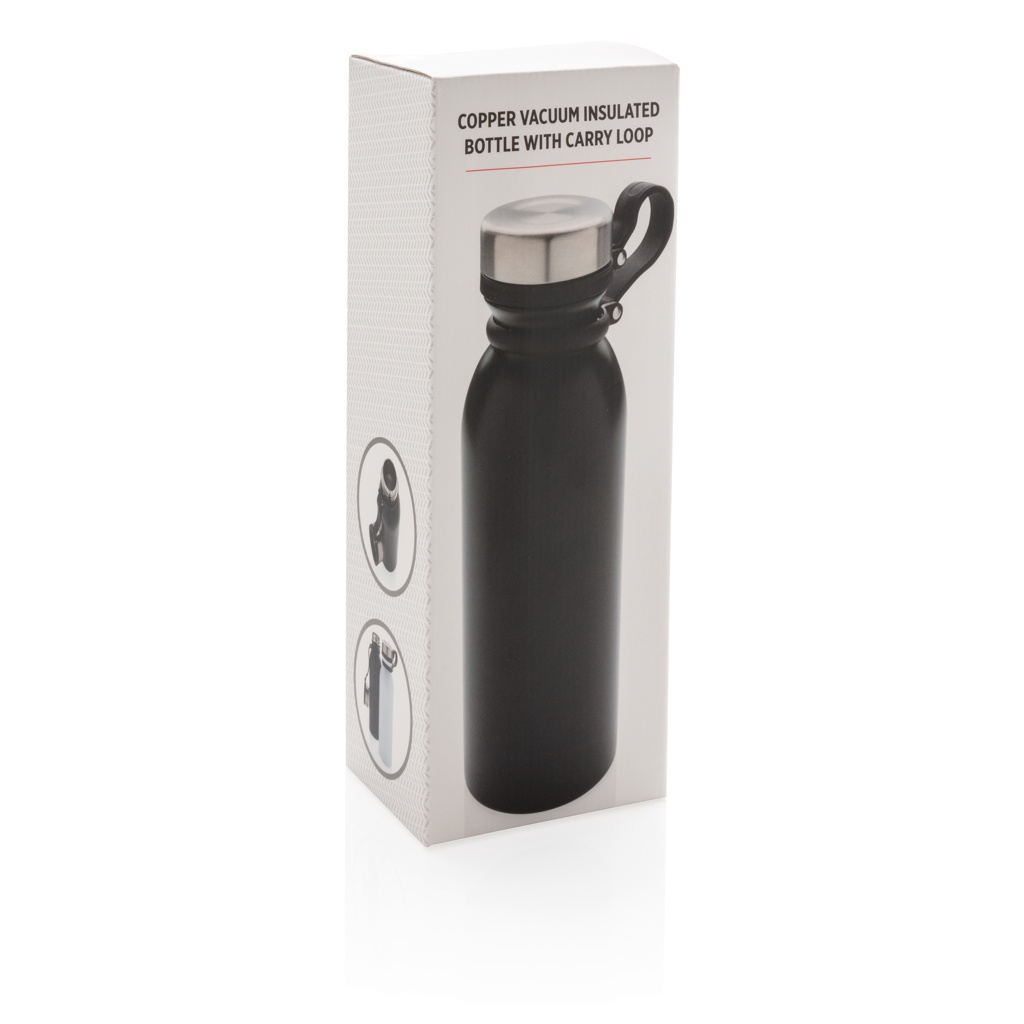 Lekkekindel vasest vaakumisolatsiooniga pudel musta silikoonist kandeaasaga. Ühe käega joomine tähendab, et kaant pole vaja hoida ega kaasas kanda. Kaasas kahekordse seinaga vaakumkonstruktsioon ja vase isolatsioon, mis tähendab, et see hoiab joogid kuumana kuni 8 tundi ja külmana kuni 24 tundi. Konstruktsioon takistab kondenseerumist pudeli välisküljel. Sisu: 600 ml.