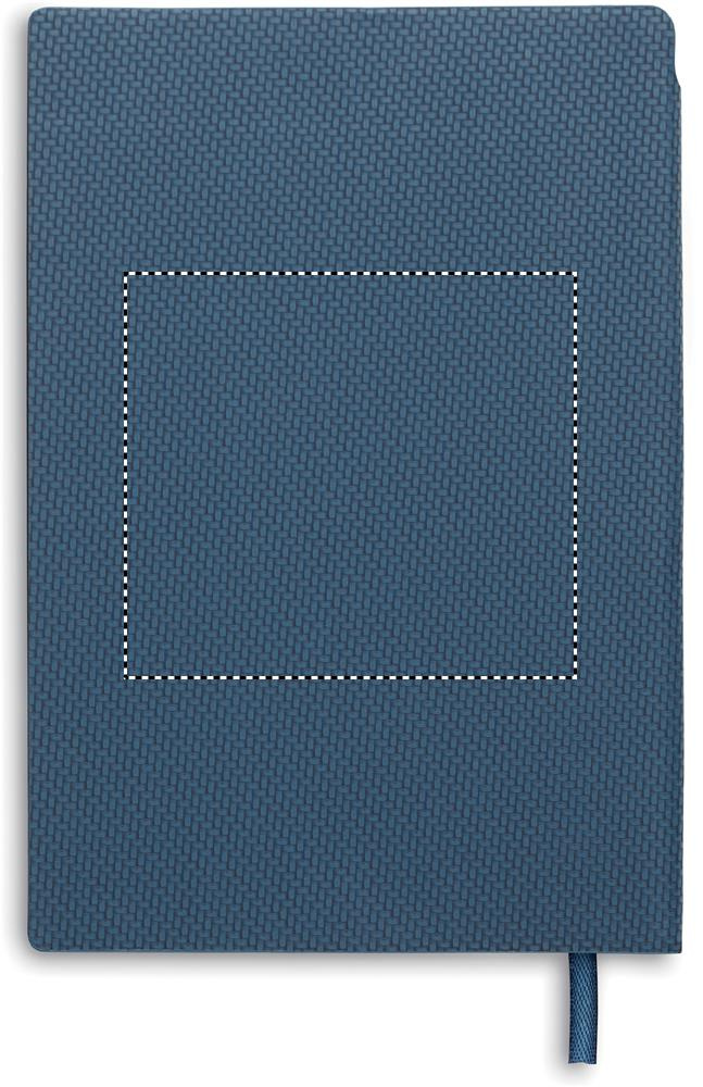 A5-kokoinen muistikirja strukturoidulla PU-kuorella ja ABS-kierrepallokynä selkä-kynäpidikkeen sisällä. Asia sidottu. 160 rivillistä sivua kierrätyspaperia (80 arkkia).