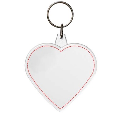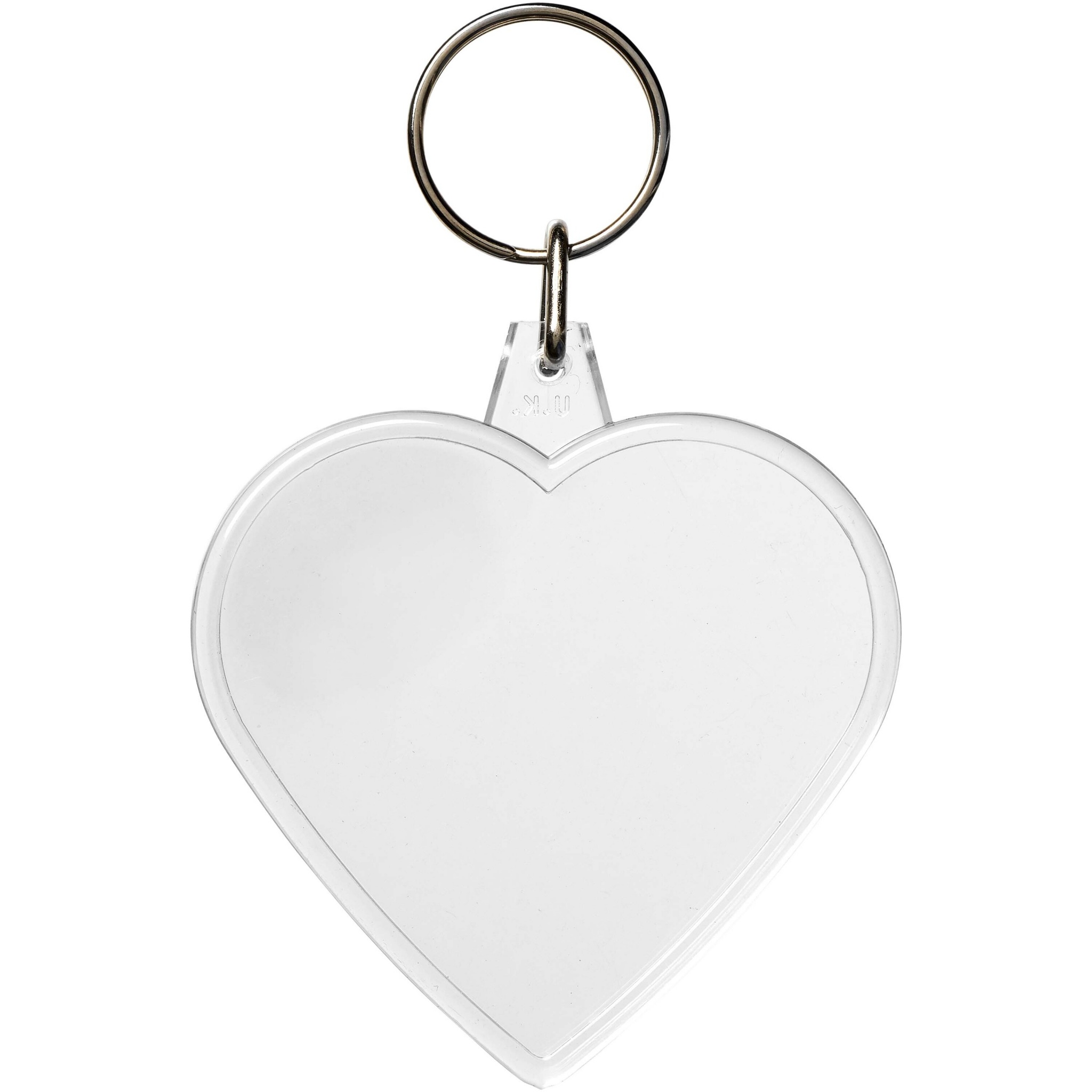 Kirkas sydämenmuotoinen avaimenperä, jossa on metallinen avainrengas. Metallirengas tekee profiilista litteän, mikä on ihanteellista postituksen kannalta. Tulosteinsertin mitat: 5,8 cm x 5,0 cm.