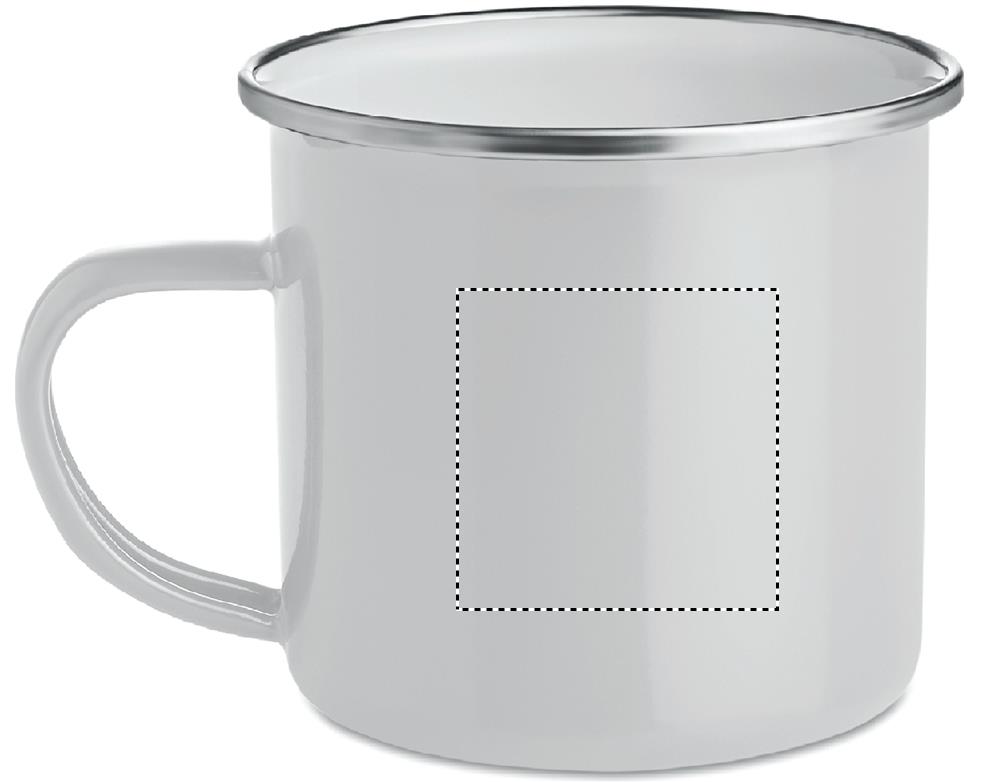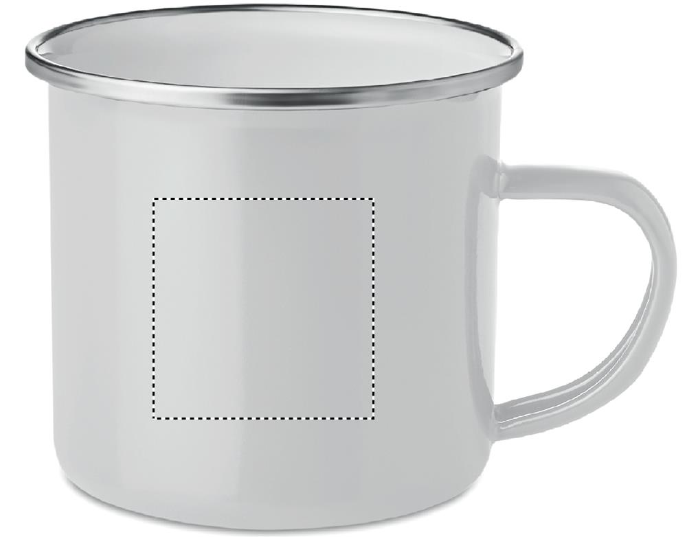 Metallinen vintage-muki, jossa on emalipinnoite. Sublimaatiopainatukseen. Tilavuus 350 ml.