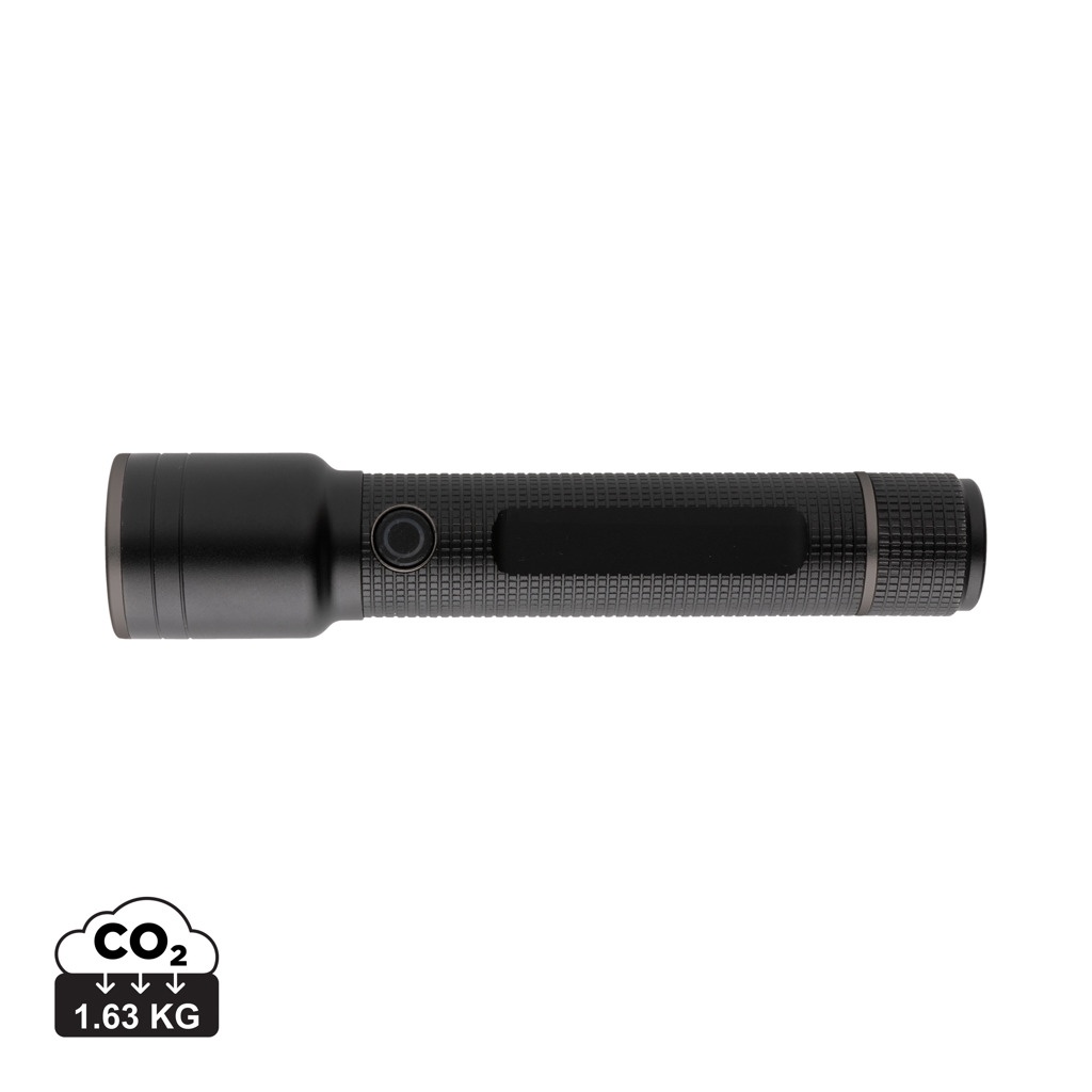Toiminnallisuus, suorituskyky ja muotoilu yhdistyvät tässä uudelleen ladattavassa 10W-taskulampussa, joka on valmistettu RCS-sertifioidusta kierrätetystä alumiinista. Kierrätetyn materiaalin kokonaismäärä: 20% kokonaispainosta. RCS-sertifiointi varmistaa täysin sertifioidun kierrätysmateriaalien toimitusketjun. Sen IP4-luokituksen ansiosta se on säänkestävä ja voidaan helposti ottaa mukaan ulos. Tehokas polttimo tuottaa jopa 800 lumenin valotehon ja valokeilan, joka ulottuu jopa 500 metriin. Taskulamppu käyttää ladattavaa a-luokan akkua, joten paristojen vaihtoa ei tarvita. Lataa vain USB-liitännän kautta ja käytä mukana toimitettua RCS-sertifioitua kierrätettyä tyyppi C -kaapelia. Laadukas polttimo sisältää 5 tilaa, mukaan lukien SOS-toiminto. 2000 mAh akku mahdollistaa jopa 8 tunnin käytön yhdellä latauksella. Alumiini ei menetä ominaisuuksiaan kierrätysprosessissa ja sitä voidaan kierrättää loputtomasti. Tuote ja tarvikkeet ovat 100% PVC-vapaita. Pakattu FSC-mix pakkaukseen.