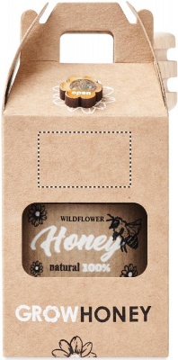 Luonnonkukka 50 gr hunajapurkki ja hunaja lusikka. Sisältää villikukan siemeniä, pakattuna voimapapperi pakkaukseen. Eurooppa tuotantoa.