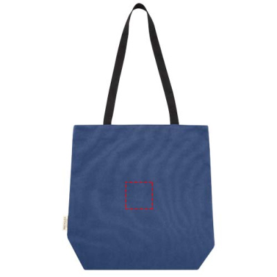 GRS-sertifioidusta kierrätetystä kankaasta valmistettu kassi GRS-sertifioidulla RPET-vuorella. Tässä monipuolisessa kassissa on pehmustettu lokero 15-tuumaiselle kannettavalle tietokoneelle ja kaksi sisätaskua puhelimelle, lompakolle tai lisätarvikkeille sekä helppo nappikiinnitys ja mukavat puuvillaiset kantohihnat. Mattapintainen metallikoristelaatta saa logon loistamaan.