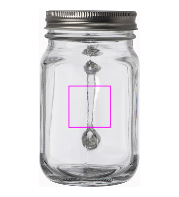 Lasikannu (450 ml), jossa metallinen kierrekansi ja olkireikä (oljet eivät sisälly). Logosi kaiverretaan laserilla ruuvikansi.