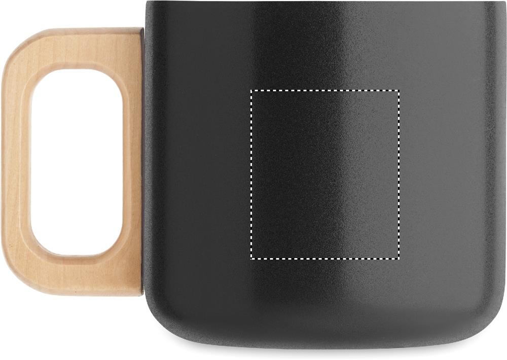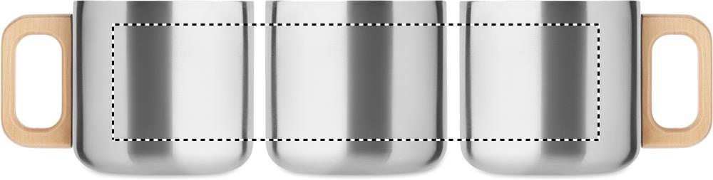 Kaksiseinäinen muki kierrätetystä ruostumattomasta teräksestä (90 % kierrätettyä ruostumatonta terästä ja 10 % ruostumatonta terästä) muki puukahvalla. Tilavuus: 350 ml.