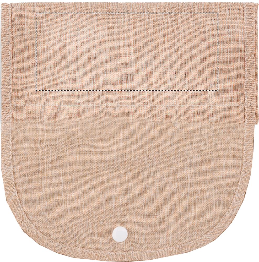 140 gr/m² kaksisävyinen kokoontaitettava kassi, valmistettu kierrätetystä puuvillasta ja polyesteristä (20%/80%). Tuota voi kutistua painossa, maksimi kanto painoraja 2,5 kiloa.