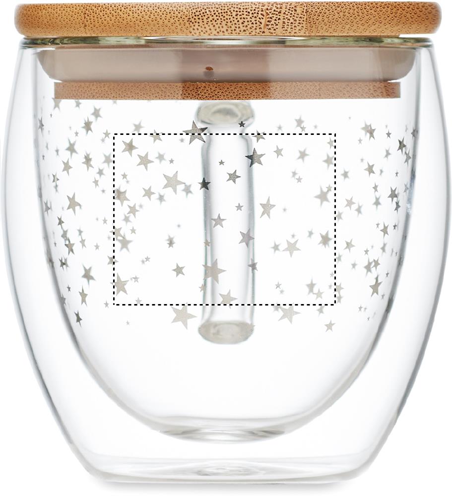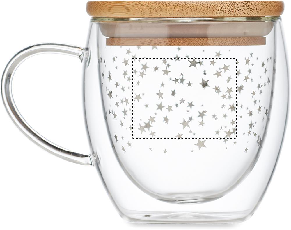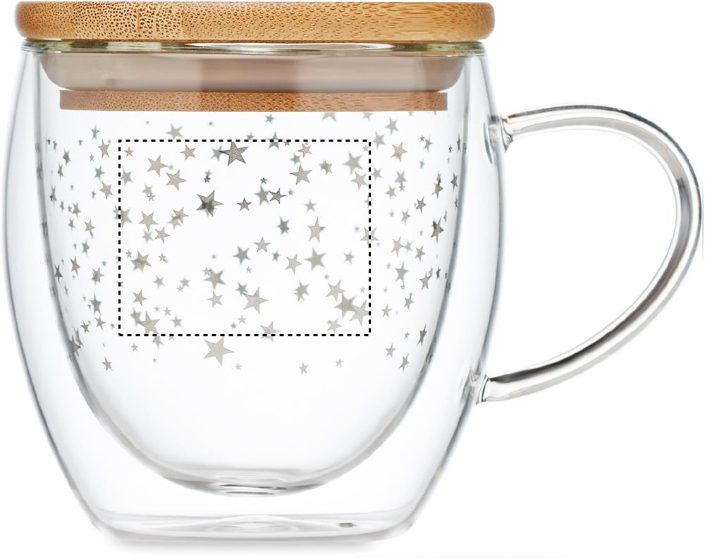 Kaksiseinäinen 220 ml borosilikaattimuki tähtikuvioinnilla ja bambukannella.