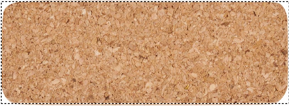 Korkista valmistettu nimikyltti, jossa on neulakiinnitys. Korkki on luonnonmateriaali, strukturaalinen laatu ja pinnan huokoisuus voi aiheuttaa eroavaisuuksia tuotteissa painatuksen jälkeen.