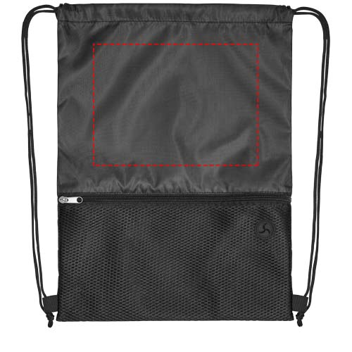 Kiristysnyörillinen reppu, jossa päälokero, samanvärisellä kiristysnyörillä. Yksi vetoketjullinen verkkoetutasku ja nappikuulokeportti. Kestää jopa 5 kg painon.