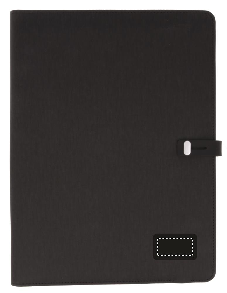 A4 PU- portfolio langattomalla latausjärjestelmällä, lähtövirta DC5V/1A. Sisältää 4000 mAh vara-akun mikro USB C portin liittimellä, 20 sivuisen muistikirjan, korttikotelon ja kynänsilmukan.