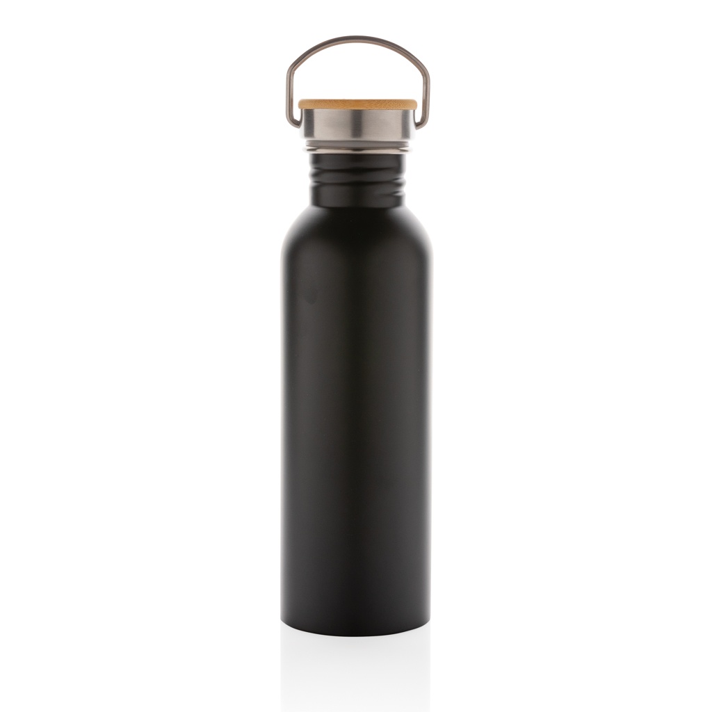 Pullo ruostumattomasta teräksestä bambukannella, musta