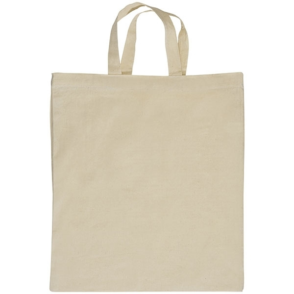 Valmistettu 140 g/m² OEKO-TEX materiaalista, luonnollinen väri, 100 % puuvillakassi kahdella lyhyellä kahvalla. Näitä laadukkaita ympäristöystävällisiä puuvillakasseja voi käyttää uudestaan ja uudestaan ja ne ovat pestäviä.