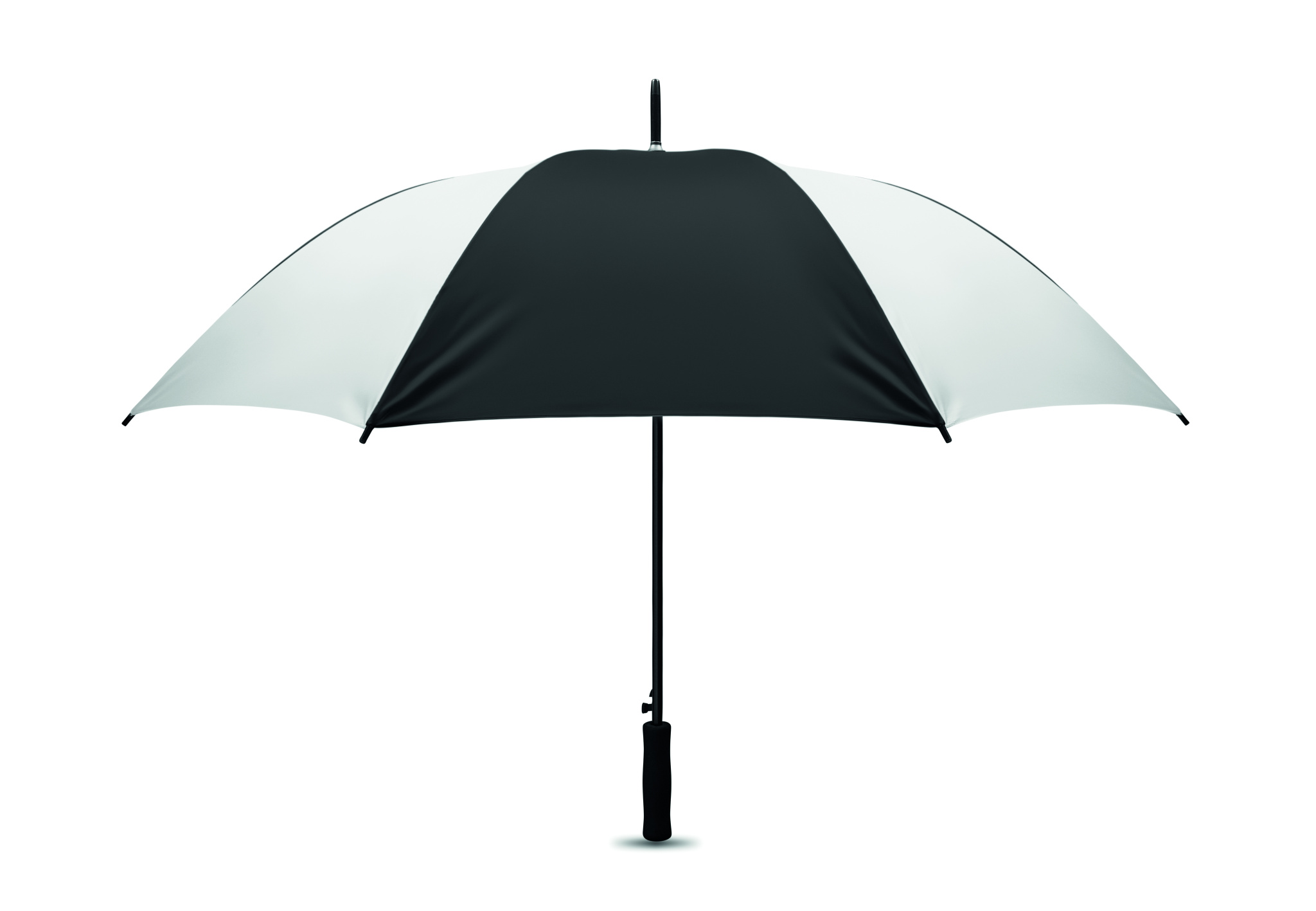 190T pongee 27 tuuman sateenvarjo automaattiavauksella. Mustalla värillä päällystetty metallivarsi-, ruoteet, EVA kahva ja muovikärjet. Manuaalinen suljin.