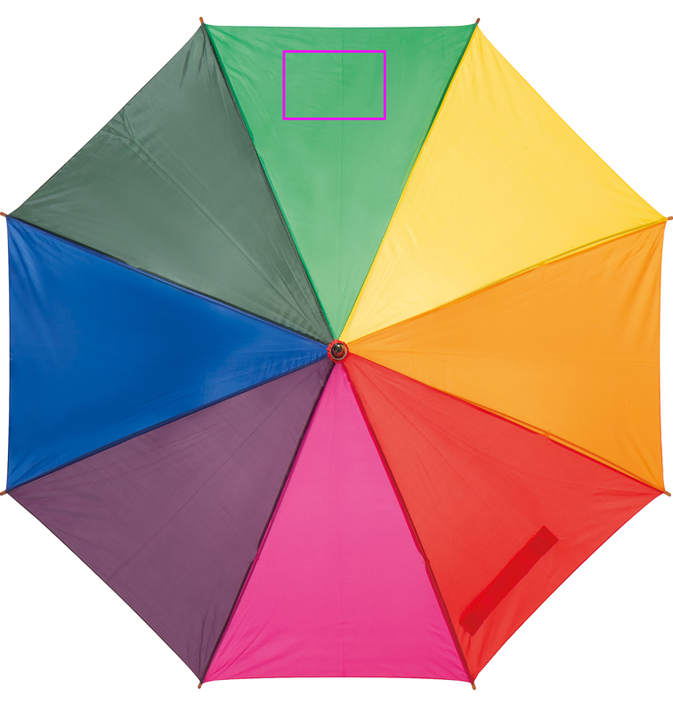 Viehättävä monivärinen automaattinen sateenvarjo kaareva puinen kahva. Painamme logosi segmenttiin.