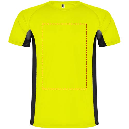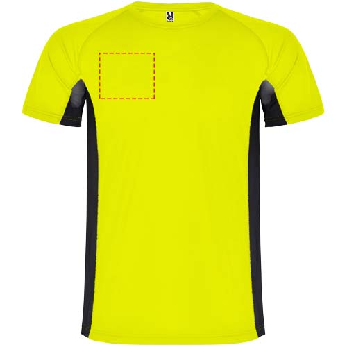 Tekninen ja hengittävä kangas. Kahden polyesterikankaan yhdistelmä: Pääkangas bird's eye -kangasta, reunaosat ja hihan sisäpuoli mikrokuitukangasta. Pyöreä pääntie, jossa vahvistetut koristesaumat sisäpuolella. Irrotettava etiketti.