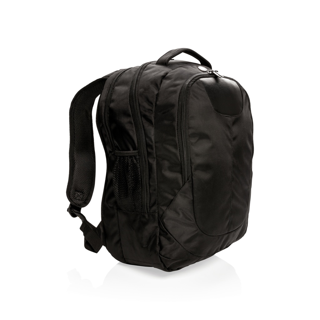 1680D polyesterinen reppu kannettaville tietokoneille tarjoaa ainutlaatuisen tasapainon mukavuuden ja ulkoilmasuojan välillä. Repun kannessa olevat taskut sopivat kaikkiin tarpeisiin, pehmustettu osio kannettavalle tietokoneelle, iPad-pidike, kynälenkit ja verkkotaskut. Olkahihnassa on audioliitin kuulokkeita varten, sekä kotelo aurinkolaseille. Mukana myös sadesuoja. Rekisteröity design®