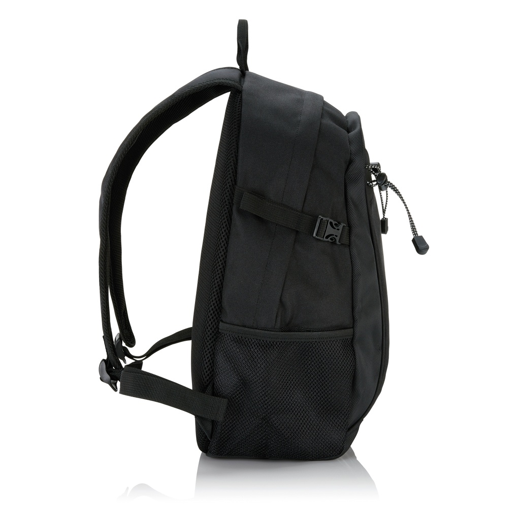Vaellusreppu suurella pääosastolla, 600D ja 168D polyesteriä. Mukava pehmustettu takaosa. Sivulla verkkotaskut vesipulloa tai muita varusteita varten. Ei sisällä PVC:tä.