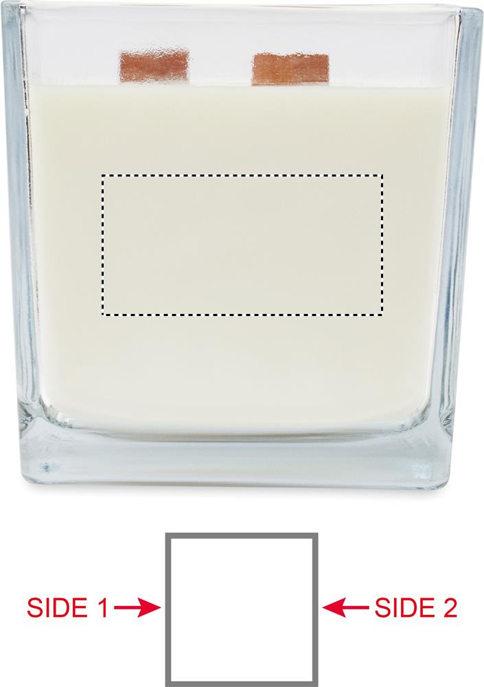 Erittäin suuri vaniljan tuoksuinen kasvipohjainen vahakynttilä, 1300 g, lasissa, jossa on kaksi puista sydäntä ja mehiläispesäkuvio. Paloaika 70 tuntia.