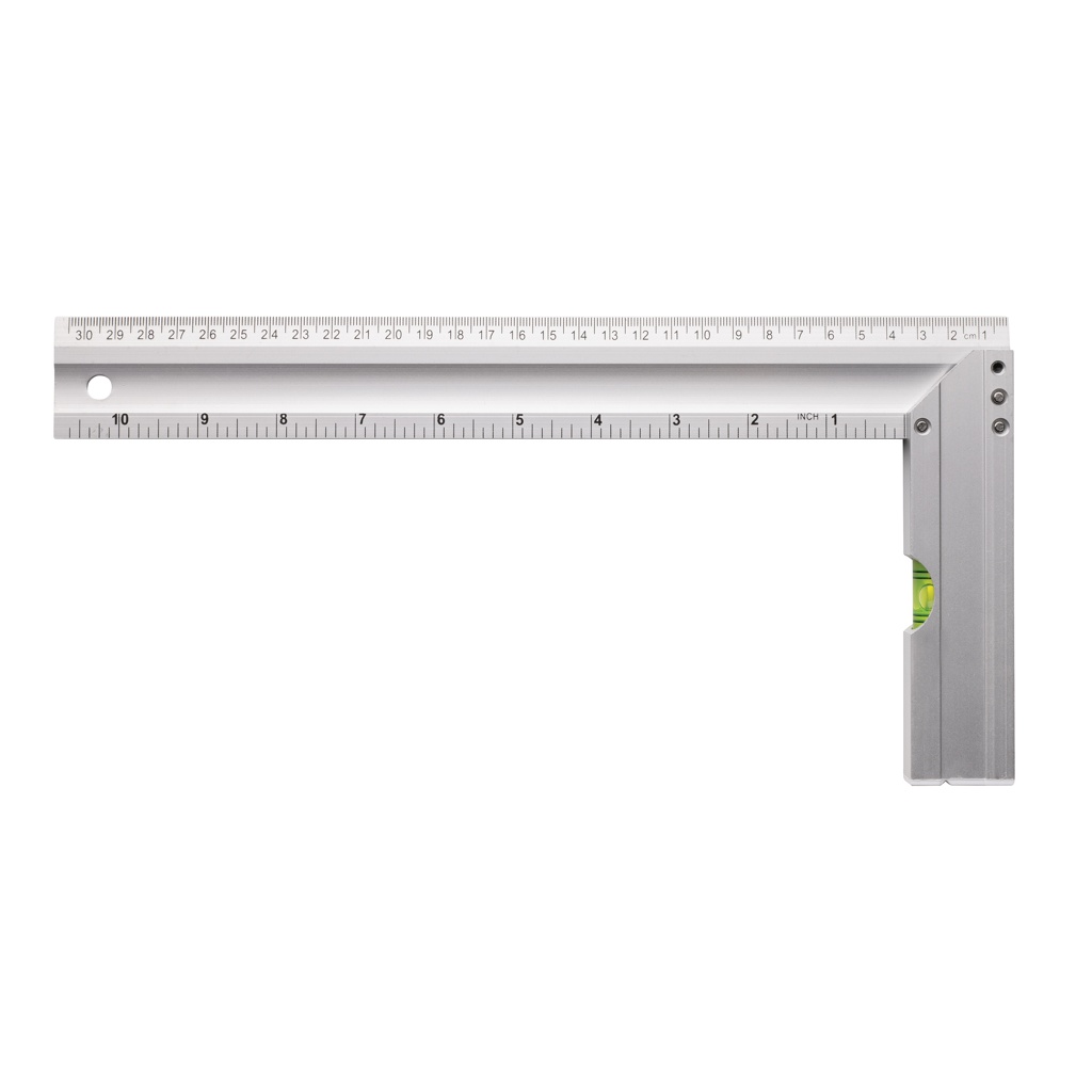 Ammattimainen alumiininen neliöviivain sisäänrakennetulla vesivaa'alla. Mittaa kulmat ja piirrä neliöitä ongelmitta. Kaksipuolinen merkkaus; toisella puolella CM (30) ja toisella puolella tuumat (10). Vesivaa'an tarkkuus 0.5mm.