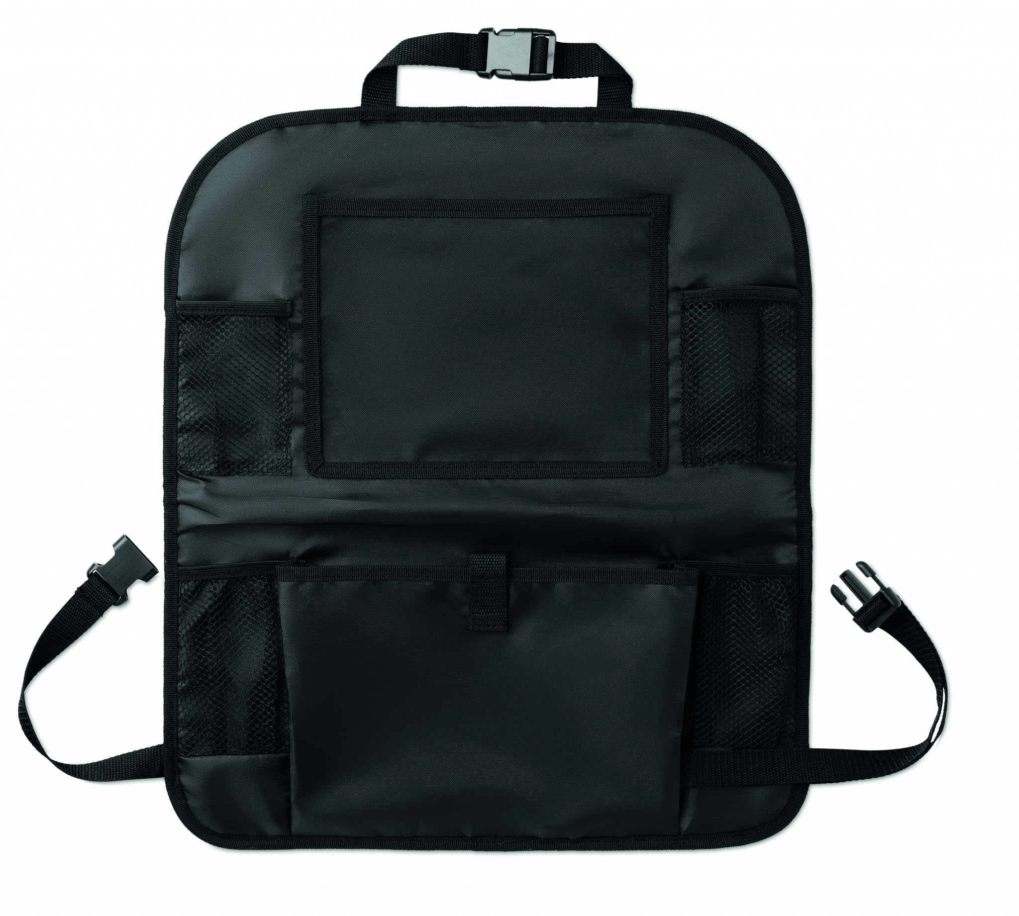 Automobilinis laikiklis sėdynės nugarai su keliais skyreliais iš 420D poliesterio.