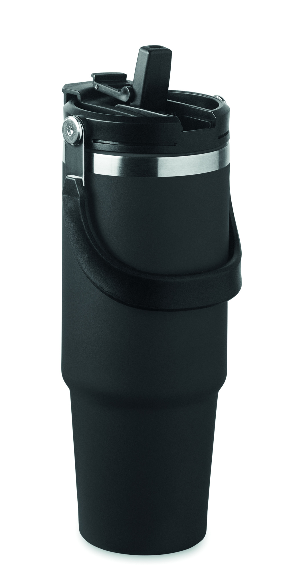 Dvigubos sienelės perdirbto nerūdijančio plieno (90 % perdirbto nerūdijančio plieno ir 10 % nerūdijančio plieno) stiklinė su dangteliu su vidiniu šiaudeliu, sulankstomu kandikliu ir tiesiogine gėrimo anga. Talpa 850 ml.
