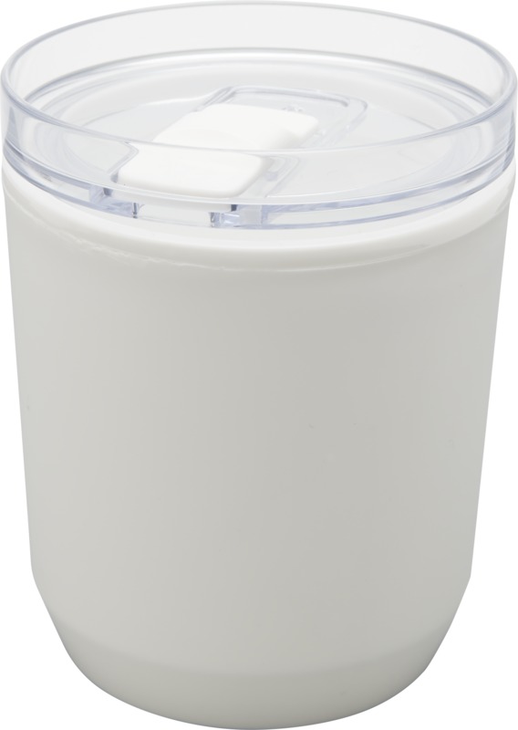 Paprasto dizaino stiklainis, tinkantis daugumai kavos aparatų ir automobilinių puodelių laikiklių. Dvigubos sienos konstrukcija su perdirbto PP plastiko išorė ir PP plastiko vidus. Stumdomas dangtis pagamintas iš AS ir PP plastiko. Tūrio talpa: 180 ml.