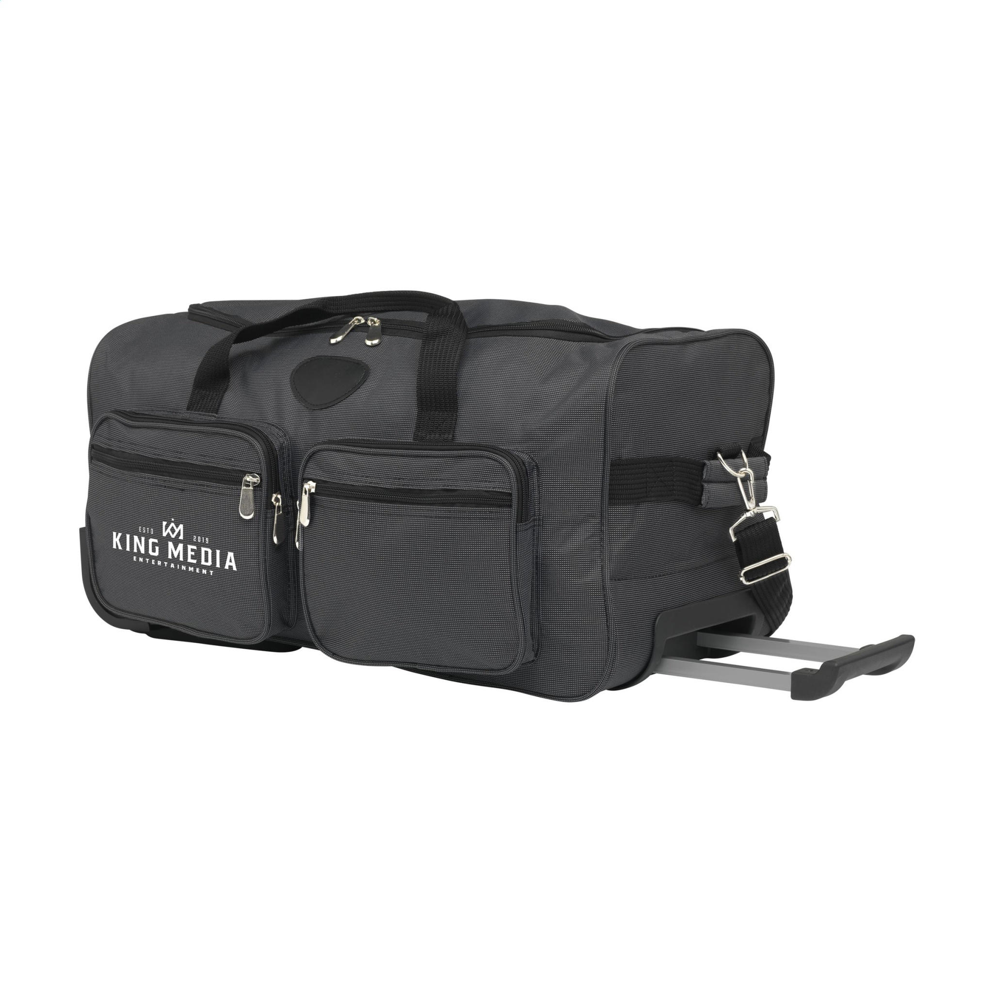 Išskirtinis bagažo vežimėlio krepšys su teleskopine rankena, 2 ratukais, dideliu pagrindiniu skyriumi ir 4 priekinėmis kišenėmis su užtrauktukais. Pagaminta iš vandenį atstumiančio, dviejų atspalvių 600D poliesterio su prašmatnia, bet subtilia languota apdaila. Talpa apytiksl. 31,5 litro.