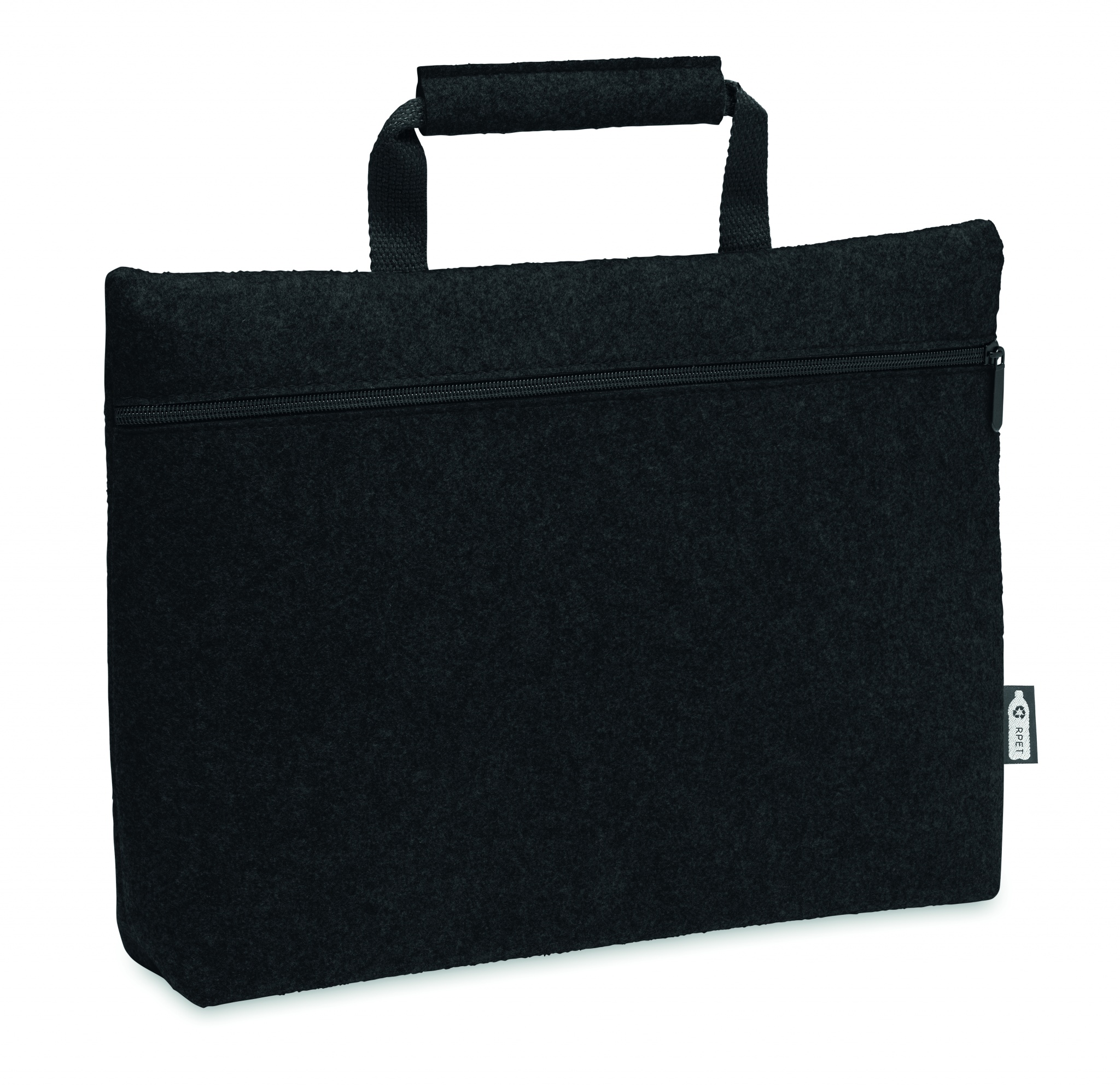 RPET veltinio 15 colių nešiojamojo kompiuterio krepšys su užtrauktuku su užtrauktuku pagrindiniu skyriumi ir vidine kišene.