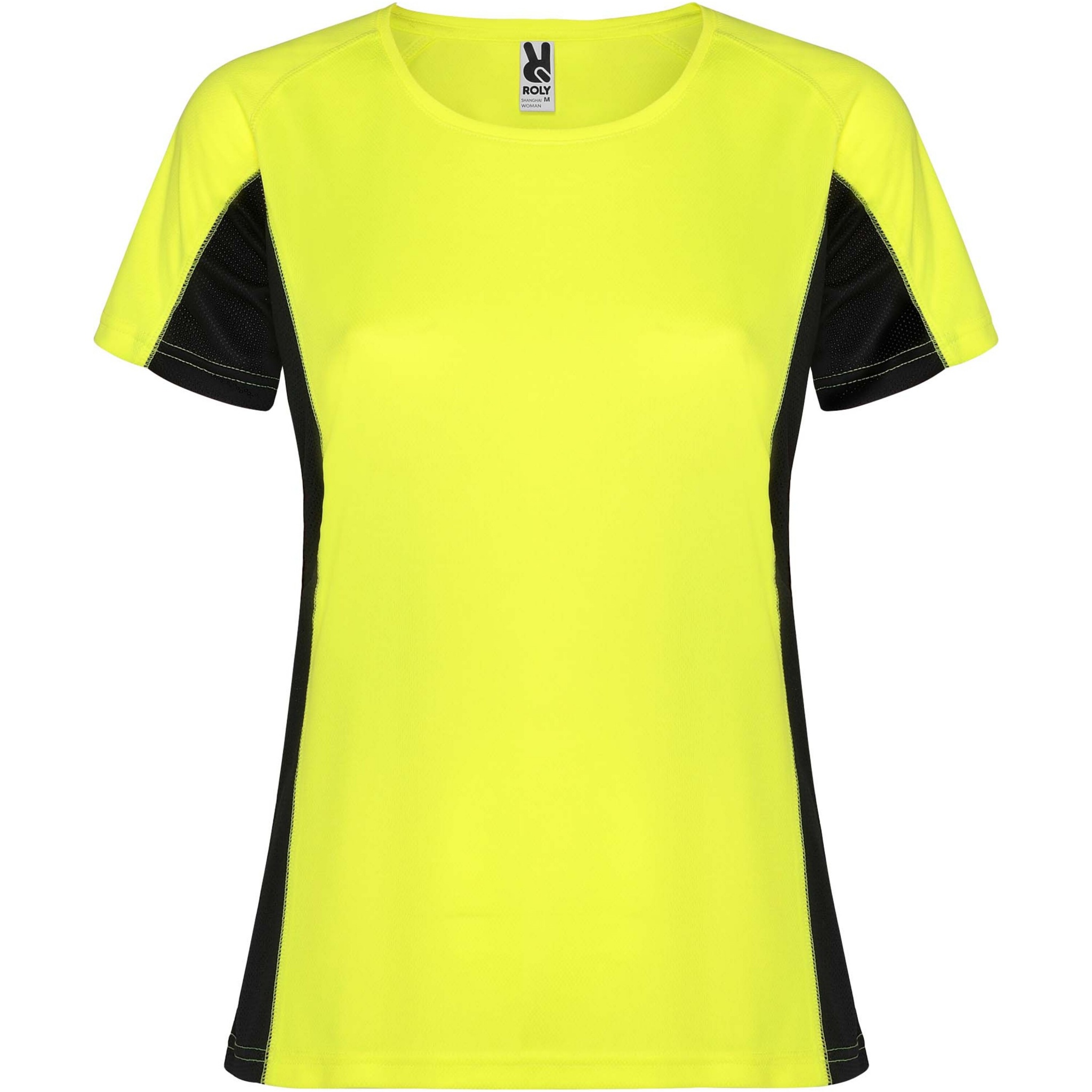 Šanchajaus moteriški sportiniai marškinėliai trumpomis rankovėmis, Fluoras geltonas / vientisas juodas