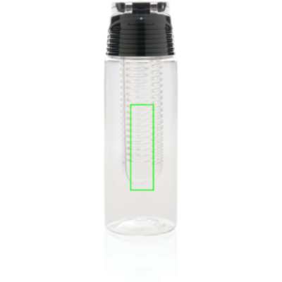 Madingas infuzinis buteliukas, skirtas vandeniui pagardinti mėgstamais vaisiais ar žolelėmis. Korpusas pagamintas iš tritano medžiagos, todėl yra atsparus įbrėžimams ir patvarus. Dangtis pagamintas iš ABS ir turi užrakinimo sistemą, kad galėtumėte pasiimti savo aromatingą vandenį, kad ir kur eitumėte. Talpa 700 ml.