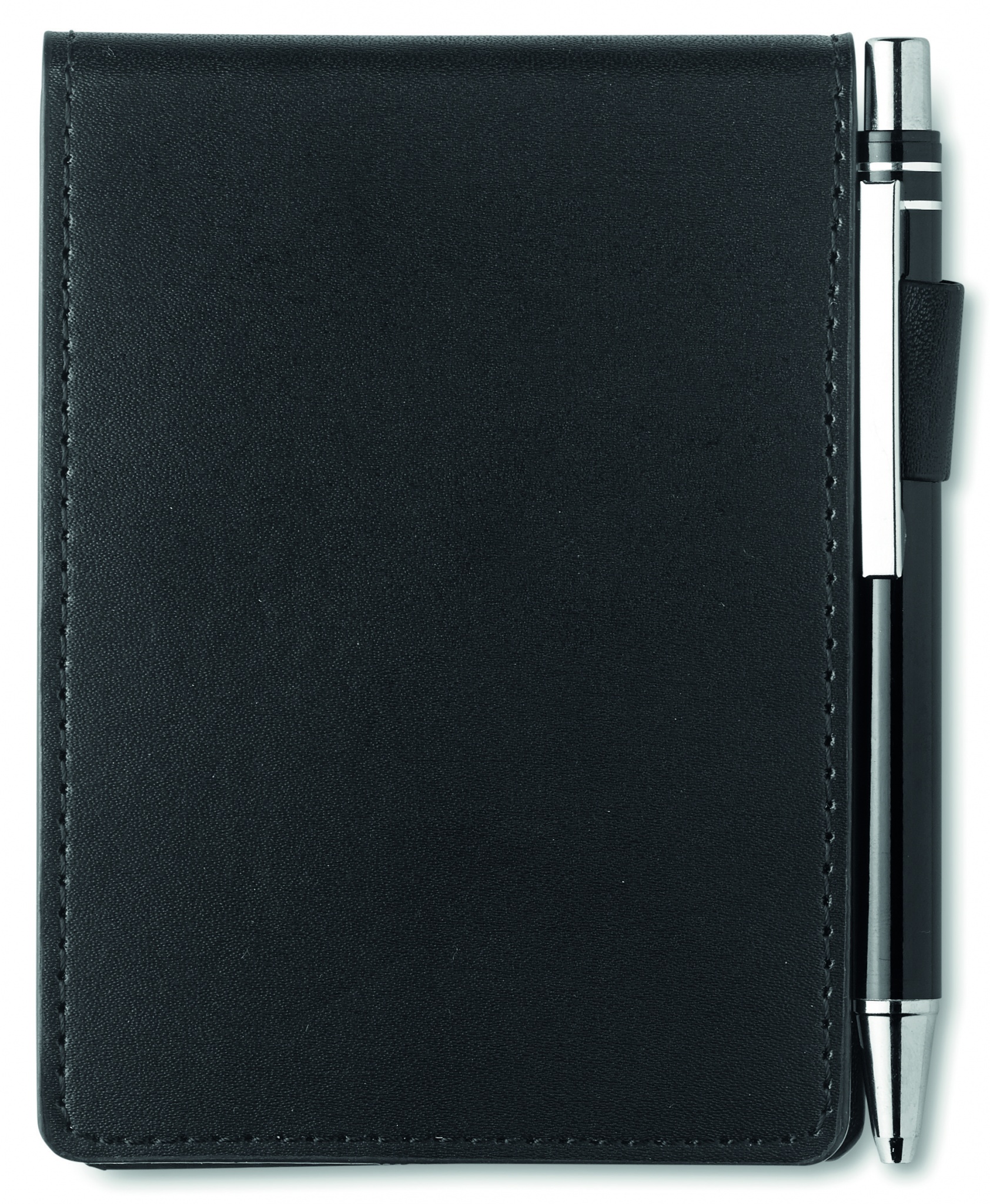 A7 piezīmju grāmatiņa PU maisiņā ar pildspalvu, Melns