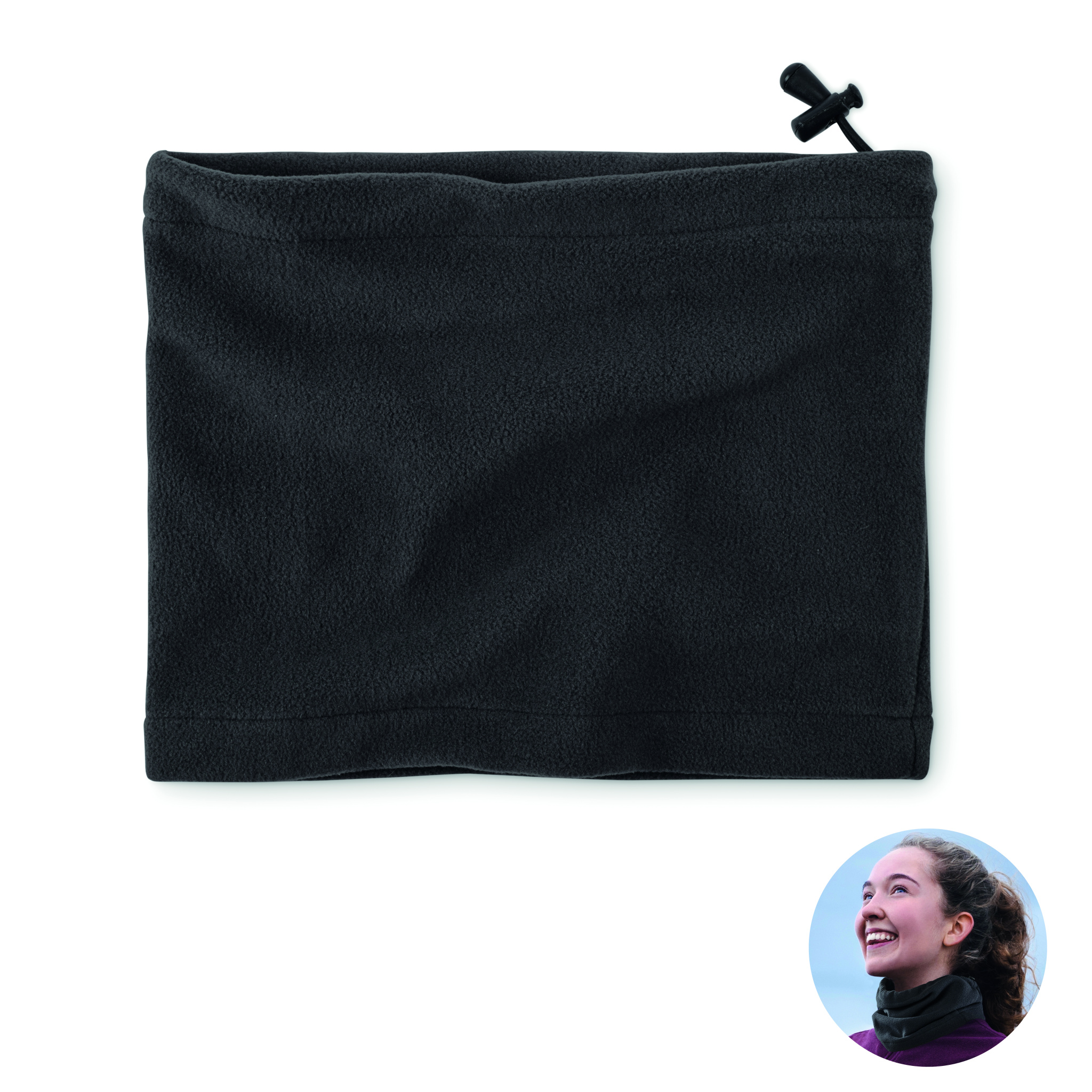 "Daudzfunkcionāla flīsa cepure, kakla sildītājs, polārā flīsa audums 200 g/m² (100% RPET poliesters). Vienota izmēra dizains."