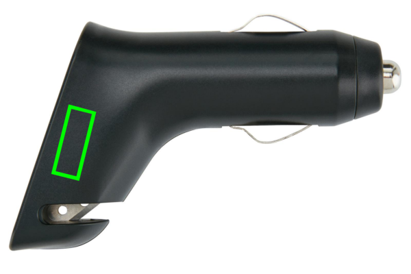Автомобильное зарядное устройство с двумя портами, резаком для ремня и молотком, черный
