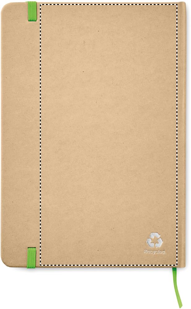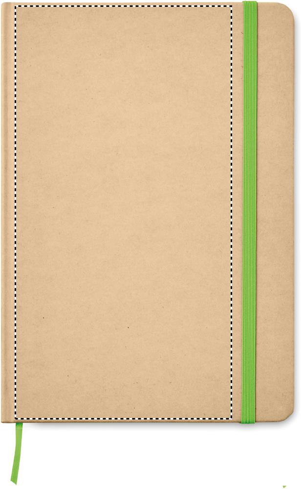 Блокнот А5 из переработанного картона с цветной закладкой и резинкой в тон. Блок линованный на 80 листов.