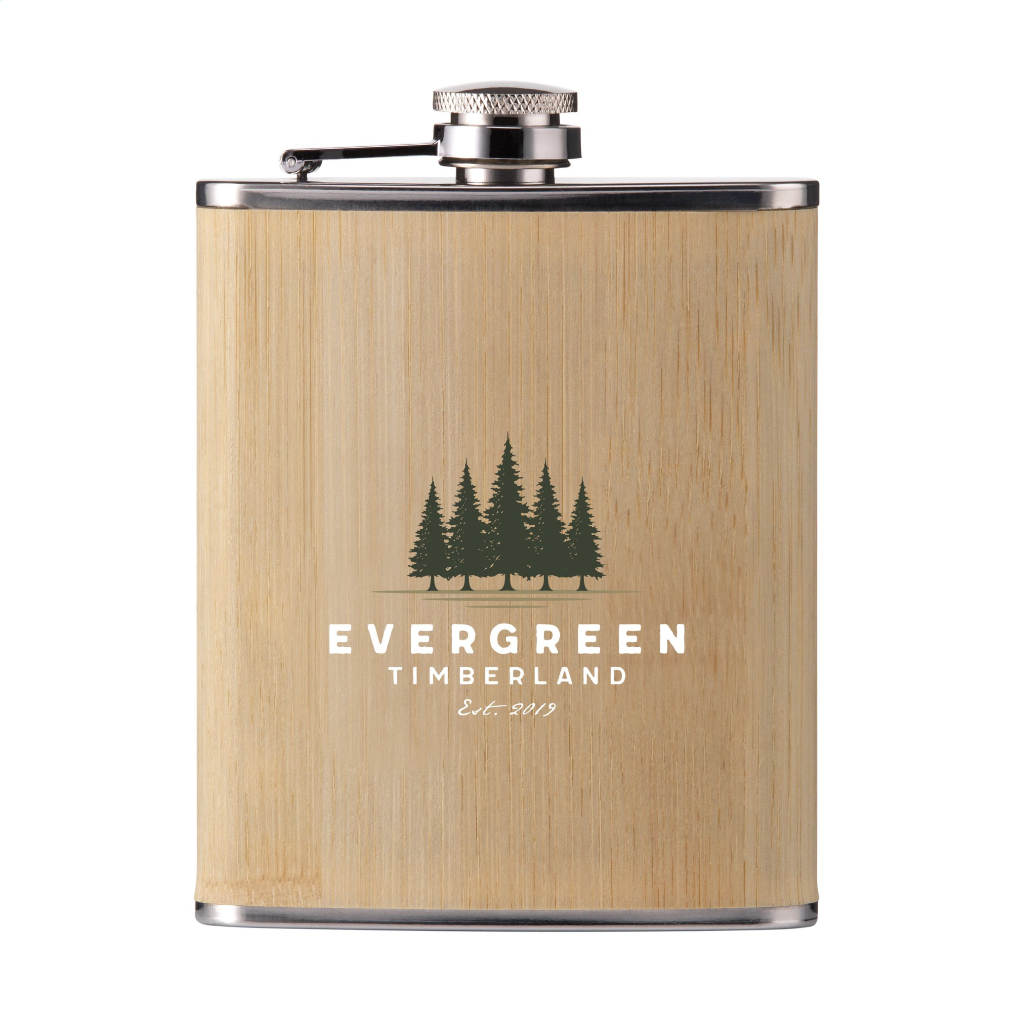 Прочная фляжка из нержавеющей стали с бамбуковым корпусом и удобной завинчивающейся крышкой. Герметичная. Емкость 200 мл. Каждый предмет в индивидуальной упаковке.