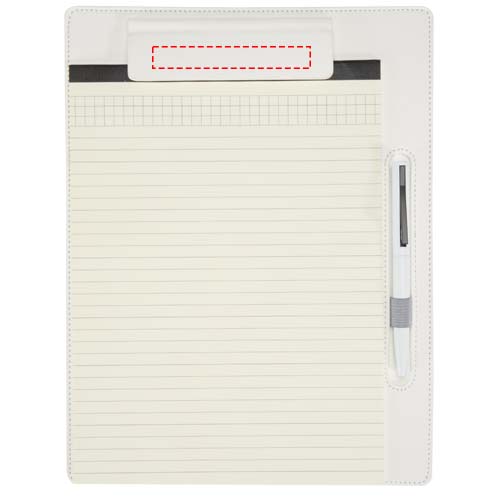 Планшет Clast сочетает в себе элегантный дизайн из искусственной кожи и практичные функции, подходящие как для встреч, так и для повседневного использования. Он вмещает стандартные страницы формата А4 и оснащен магнитным зажимом, прошитыми краями и встроенной петлей для ручки. Внутри находятся 26 линованных листов бумаги плотностью 65 г/м², а также шариковая ручка, верхний корпус, изготовленный из переработанной пластмассы, а нижний — из сертифицированного RCS переработанного алюминия. Шариковая ручка Juana также доступна отдельно. Размер планшета: 25,5 × 33 см. Цвет чернил ручки: черный.