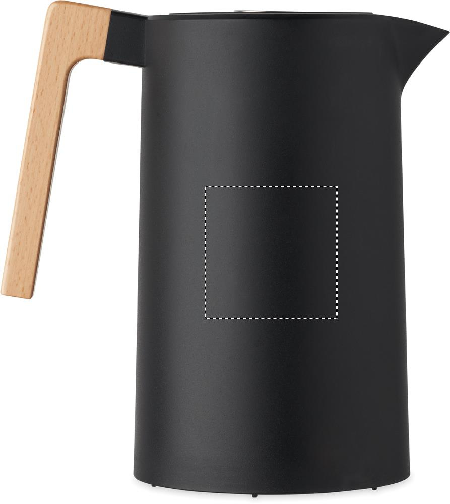 Double wall insulated vacuum jug recycled stainless steel (90% recycled stainless steel and 10% stainless steel) inside and PP outside wall with wooden handle. Capacity: 1L.