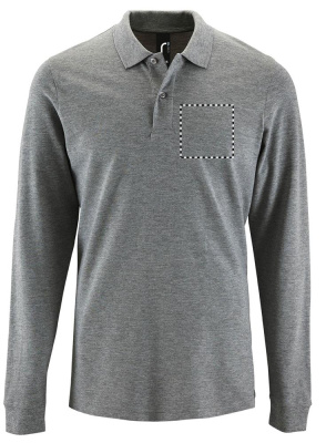 SOL'S PERFECT Мужская рубашка-поло с длинными рукавами, ребристым воротником и манжетами рукавов 1x1, планкой с 2 пуговицами в тон, проклеенным воротником с внутренней стороны, отрывной этикеткой на шее. Характеристики ткани: 180 г/м², 100% чесаный хлопок. OEKO-TEX®. Продается только с принтом