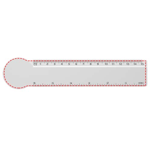 Линейка из твердой переработанной пластмассы в форме круга с разметкой в сантиметрах или дюймах.