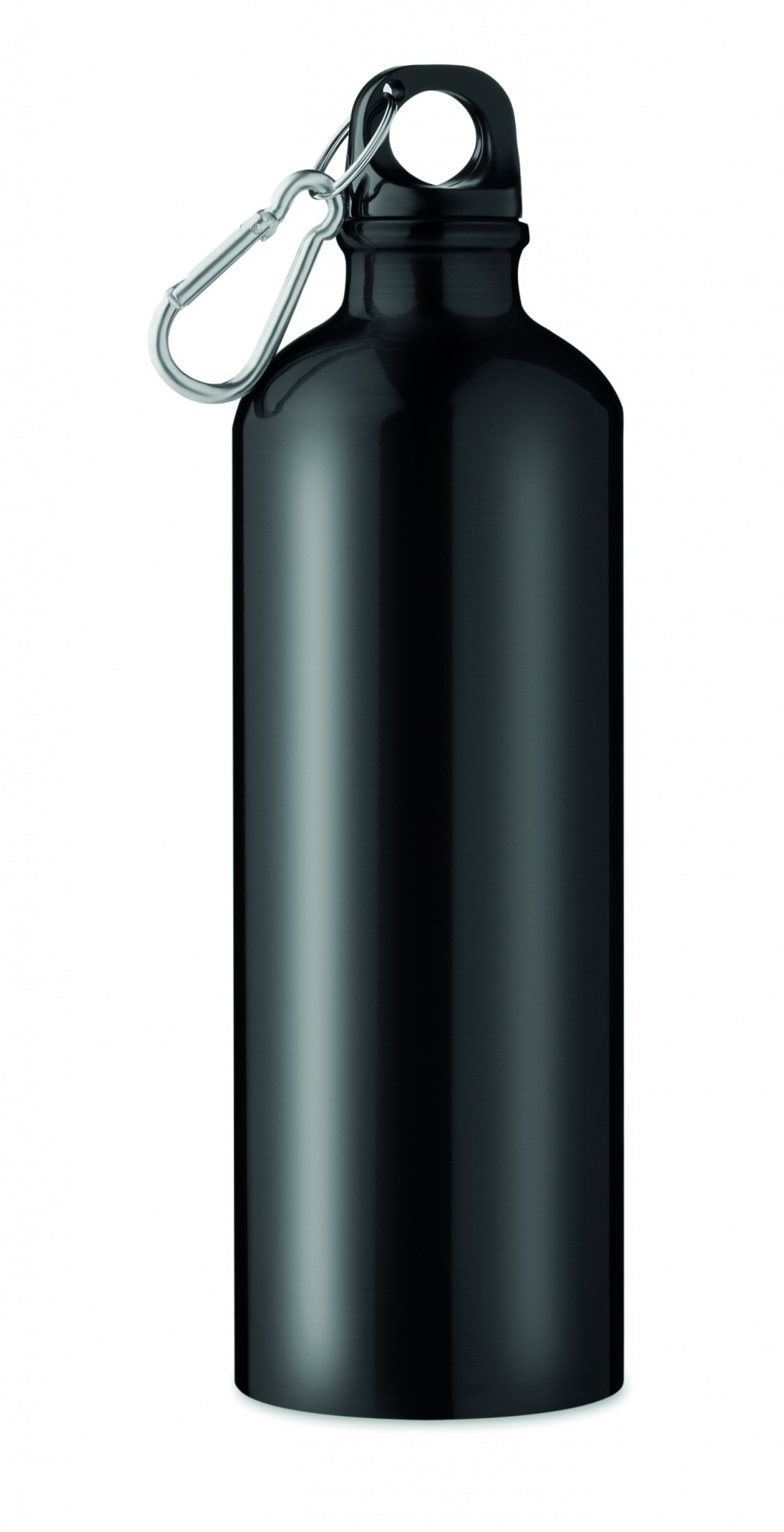 Одностенный алюминиевый бутылка объемом 750 мл с карабином и возможностью индивидуальной печати, Черный
