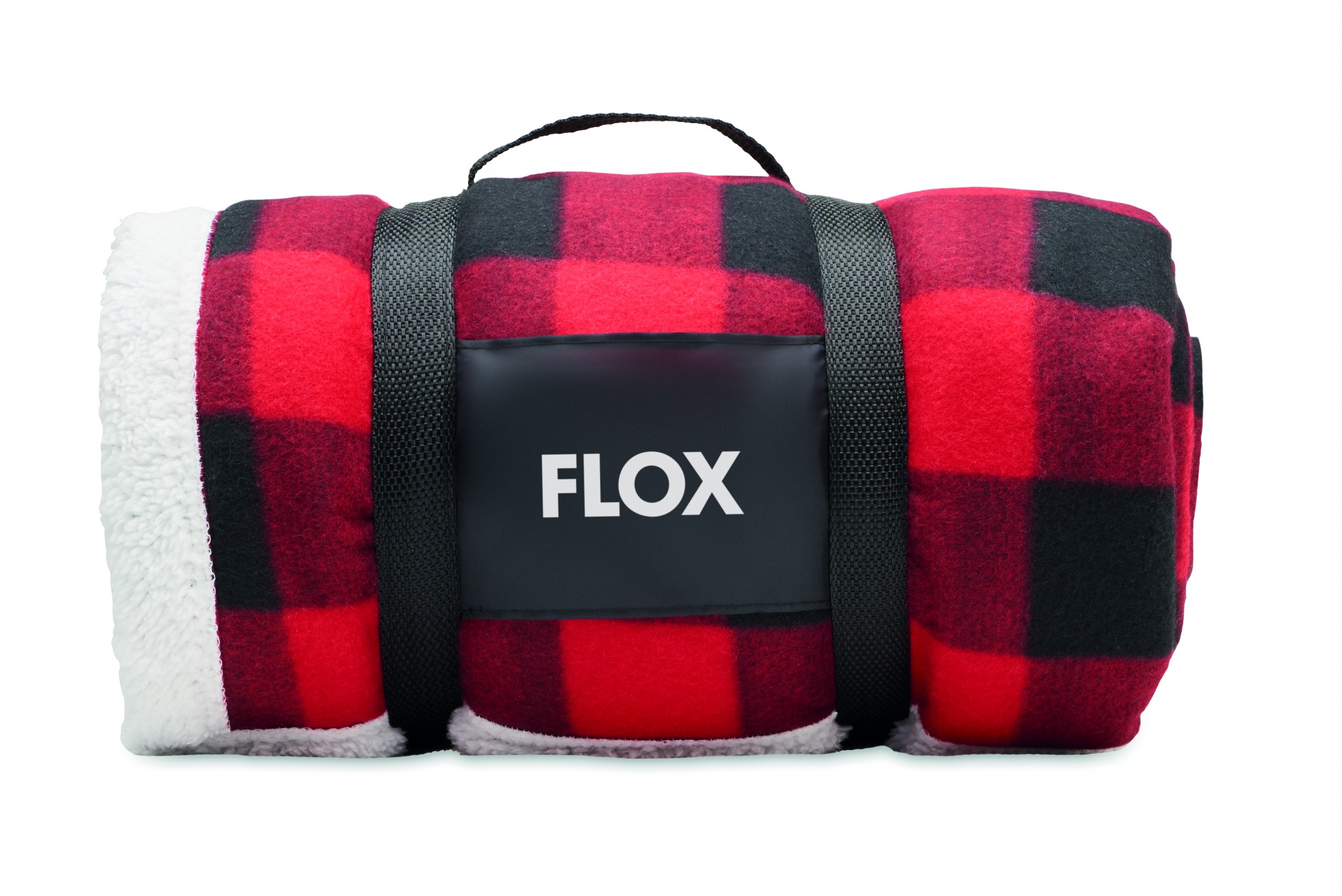 Плед из флиса RPET (180 гр/м²) и шерпы (230 гр/м²). Поставляется с ремешком для переноски из RPET.