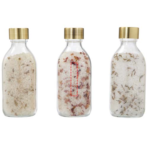 Подарочный набор «Just Relax» из 3 единиц соли для ванны из Мертвого моря объемом 200 мл в бутылках из прозрачного стекла со стальным колпачком латунного цвета. Каждая бутылка имеет свой запах: Розы, лаванда и ромашка. Не принимаете ванну дома? Соль для ванн также можно использовать для освежения и расслабления уставших ног. Идеальный подарок на любой случай за доступную цену. Сделано в Нидерландах.