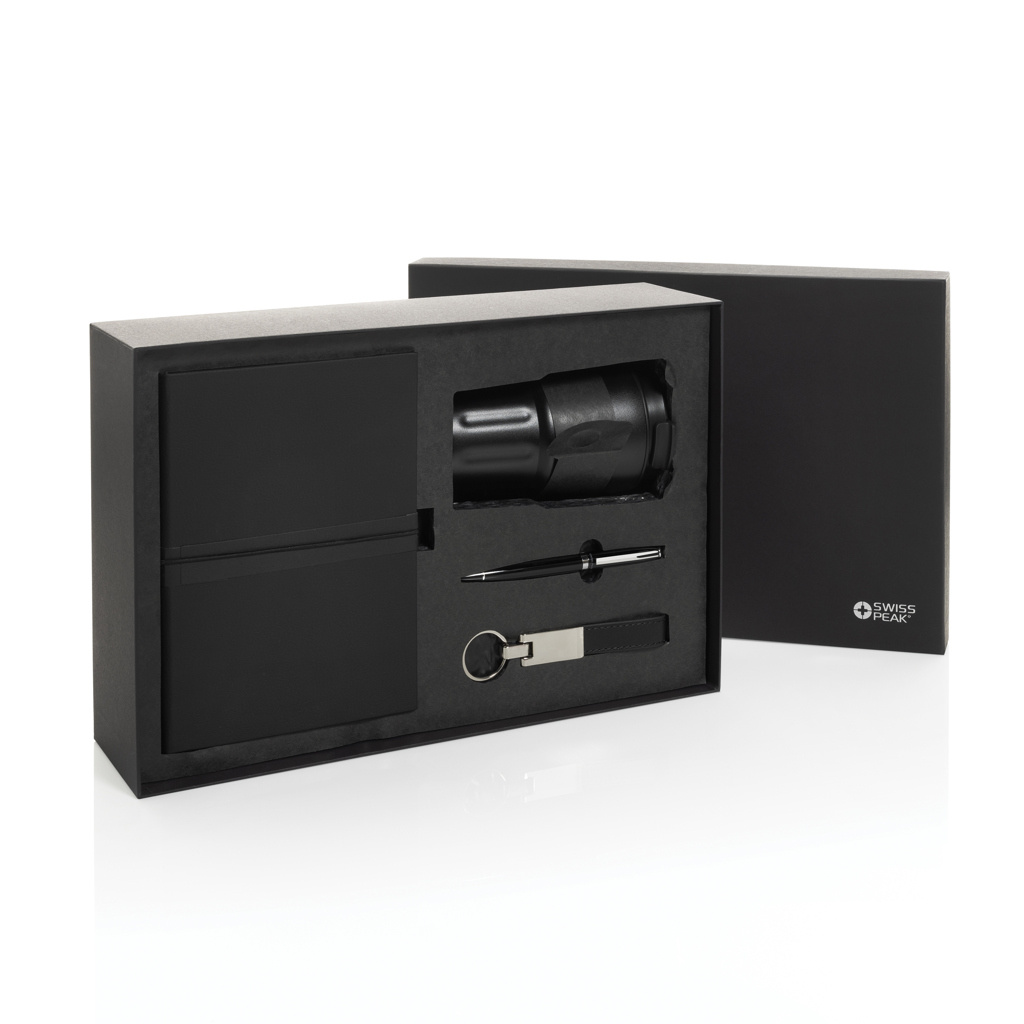 Подарочный набор Swiss Peak класса люкс с сертификатом RCS и термокружкой., черный