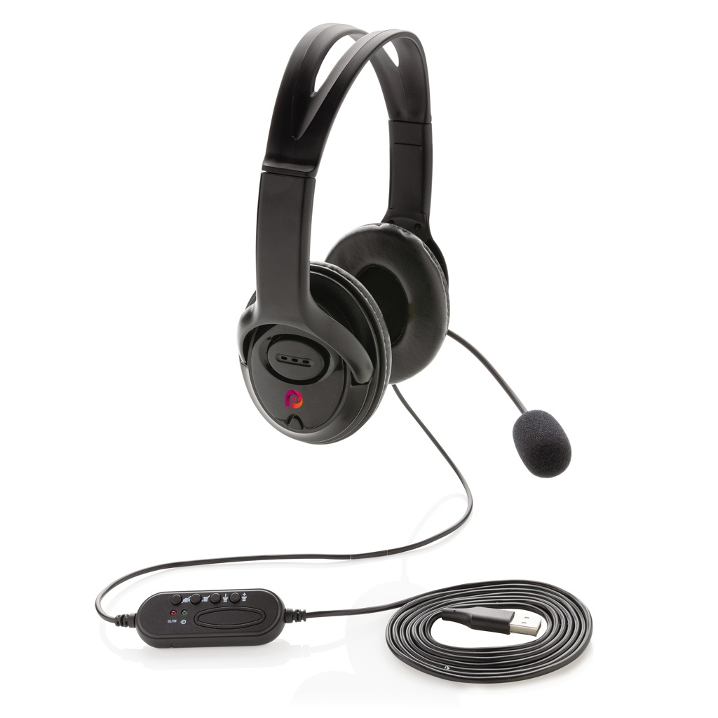 Лого трейд бизнес-подарки фото: Проводная рабочая гарнитура с наушниками