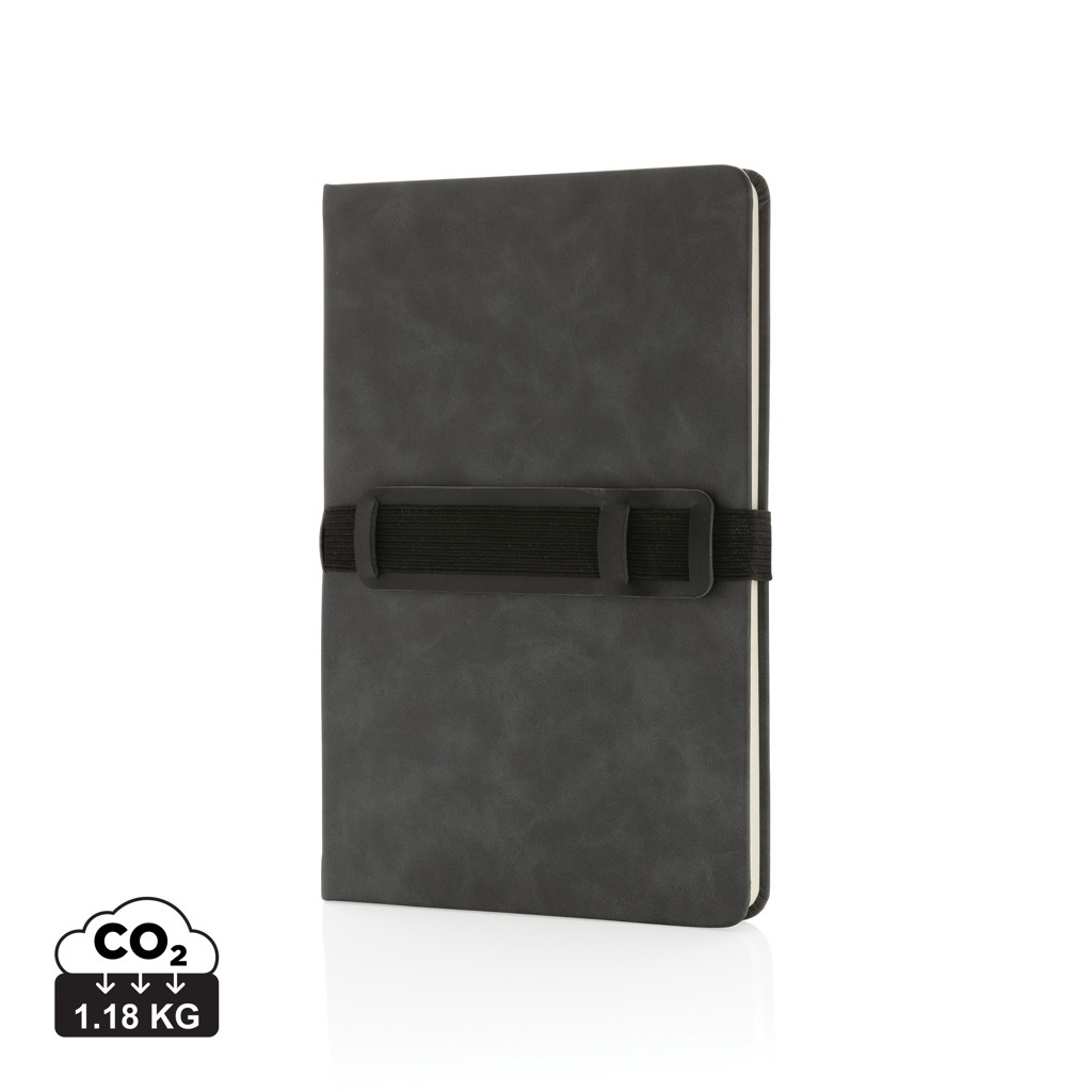 Роскошный блокнот в твердом переплете формата А5 с держателем для телефона и ручки, серый