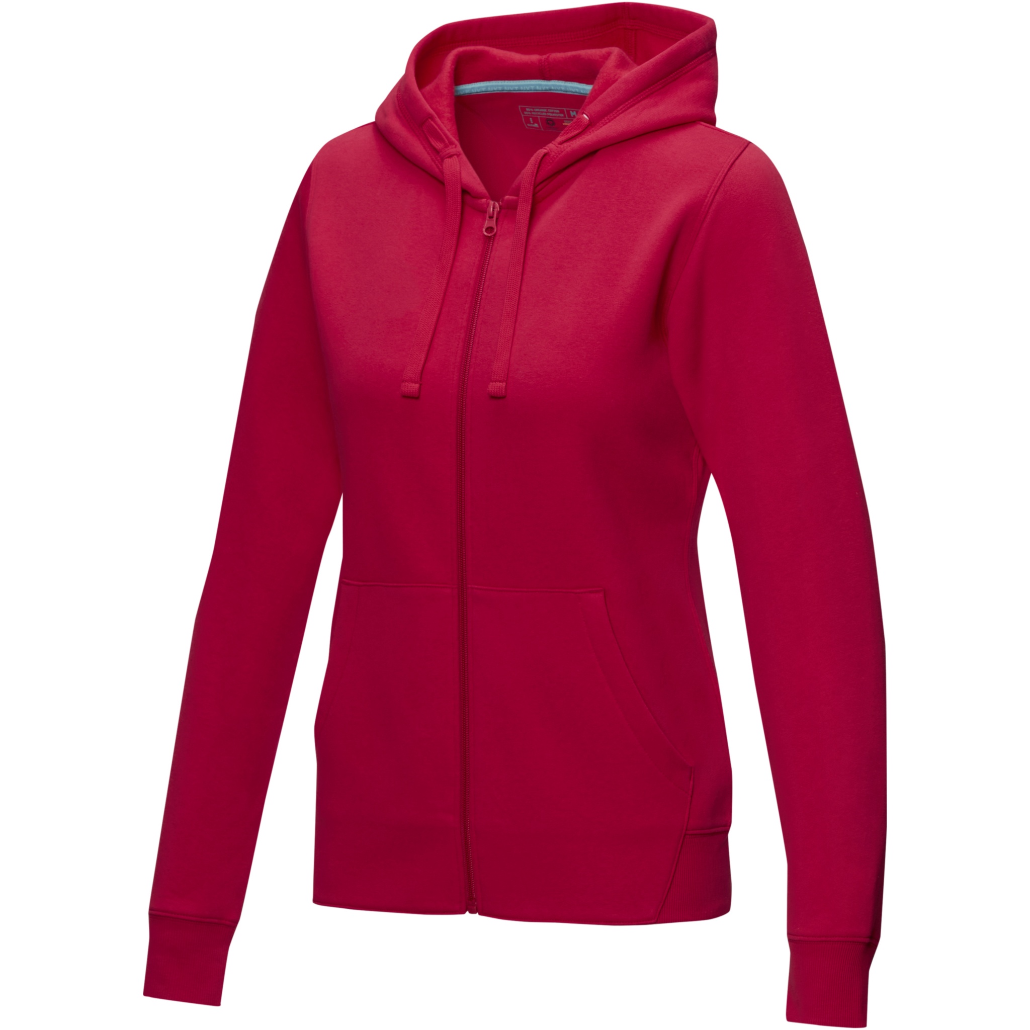 The Ruby women's organic recycled full zip hoodie – this hoodie showcases a blend of eco-conscious features that redefine modern fashion. With a soft brushed interior, it ensures a cozy feel. Made from a 280 g/m² blend of organic cotton and recycled polyester. This hoodie is designed with a fitted shape for a feminine look.