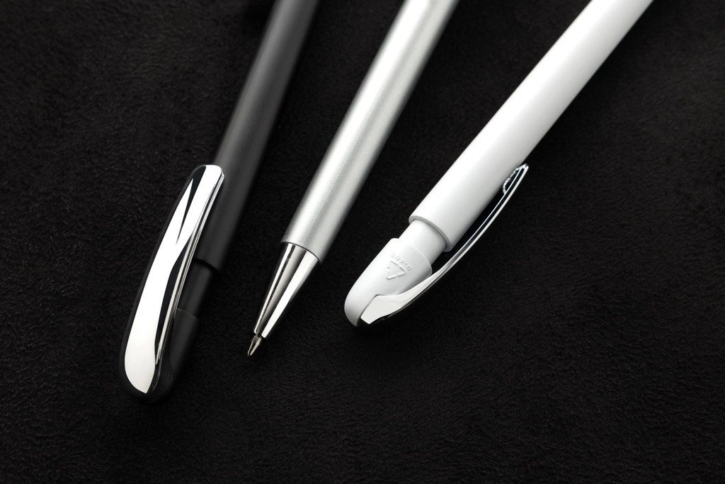Шариковая ручка с потрясающим хромированным металлическим зажимом. В комплекте стержень с синими чернилами German Dokumental® длиной около 1200 м и шариком TC-ball для сверхплавного письма. Изготовлена на 55% из переработанного АБС-пластика, сертифицирована RCS.