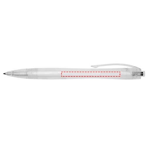Шариковая ручка с кнопочным механизмом, изготовлена из переработанного ПЭТ, позволяет уменьшить использование первичного пластика. Шариковая ручка выполнена в прозрачном корпусе с цветной кнопкой. Она поставляется в комплекте с синим стержнем и может крепиться к блокноту Honua RPET 107763.