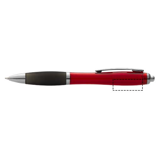 Шариковая ручка с кнопочным механизмом и мягким держателем.