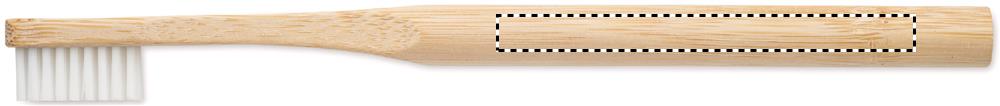 Зубная щетка с бамбуковой ручкой и нейлоновыми щетинками на подставке. Поставляется в коробке из крафт-бумаги.